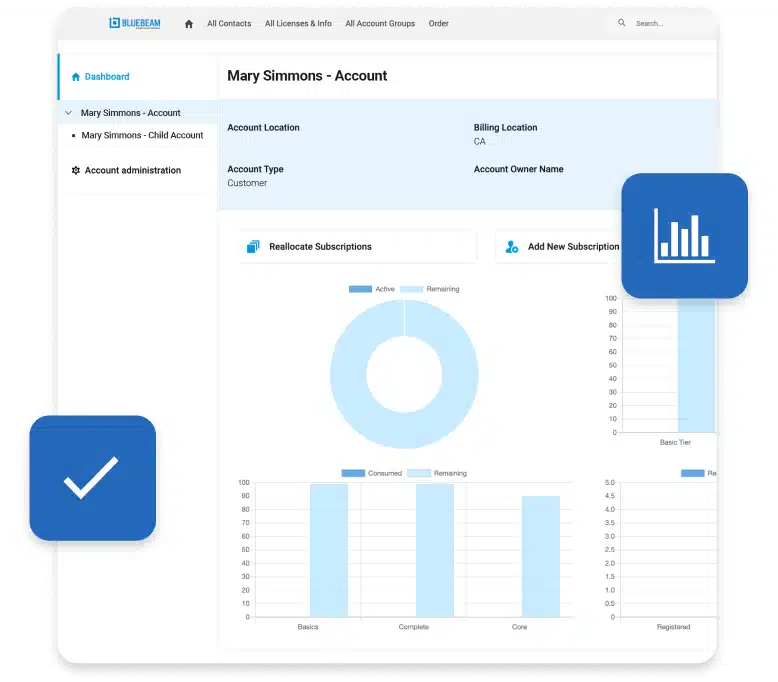 - Obtenha maior visibilidade do uso do Bluebeam em toda a sua organização.