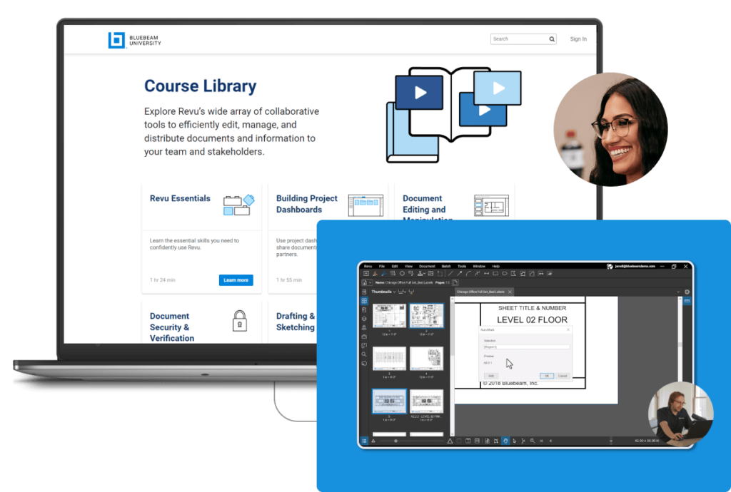 Oferecemos diversas opções para ajudar indivíduos e equipes a se familiarizarem rapidamente com o Bluebeam, incluindo cursos autoguiados da Bluebeam University, treinamentos com instrutor, consultoria especializada e muito mais. Confira nossa