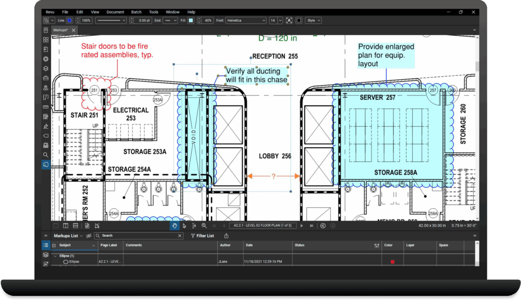 Embora a Adobe e a Bluebeam ofereçam ferramentas de marcação e gerenciamento de PDFs, o software da Bluebeam foi desenvolvido sob medida para profissionais de AEC (Arquitetura, Engenharia e Construção), com marcações padrão do setor e recursos de colaboração em tempo real especialmente projetados para simplificar cada fase do processo de construção.